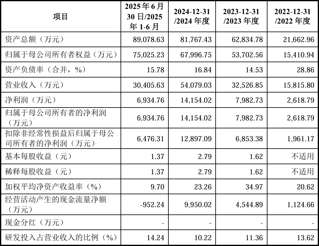 报告期内,发行人营业收入分别为1.58亿元、3.25亿元、5.41亿元、3.04亿元,对应归母净利润分别为2618.79万元、7982.73万元、1.42亿元、6934.76万元。