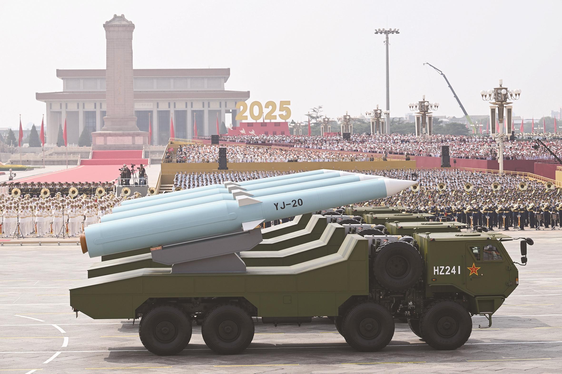 “巨浪-3”潜射洲际导弹、“惊雷-1”空基远程导弹、“东风-31”新型陆基洲际导弹、“东风-61”陆基洲际导弹,首次集中展示我军陆、海、空基“三位一体”战略核力量,是维护国家主权、捍卫民族尊严的战略“王牌”。(新华社)