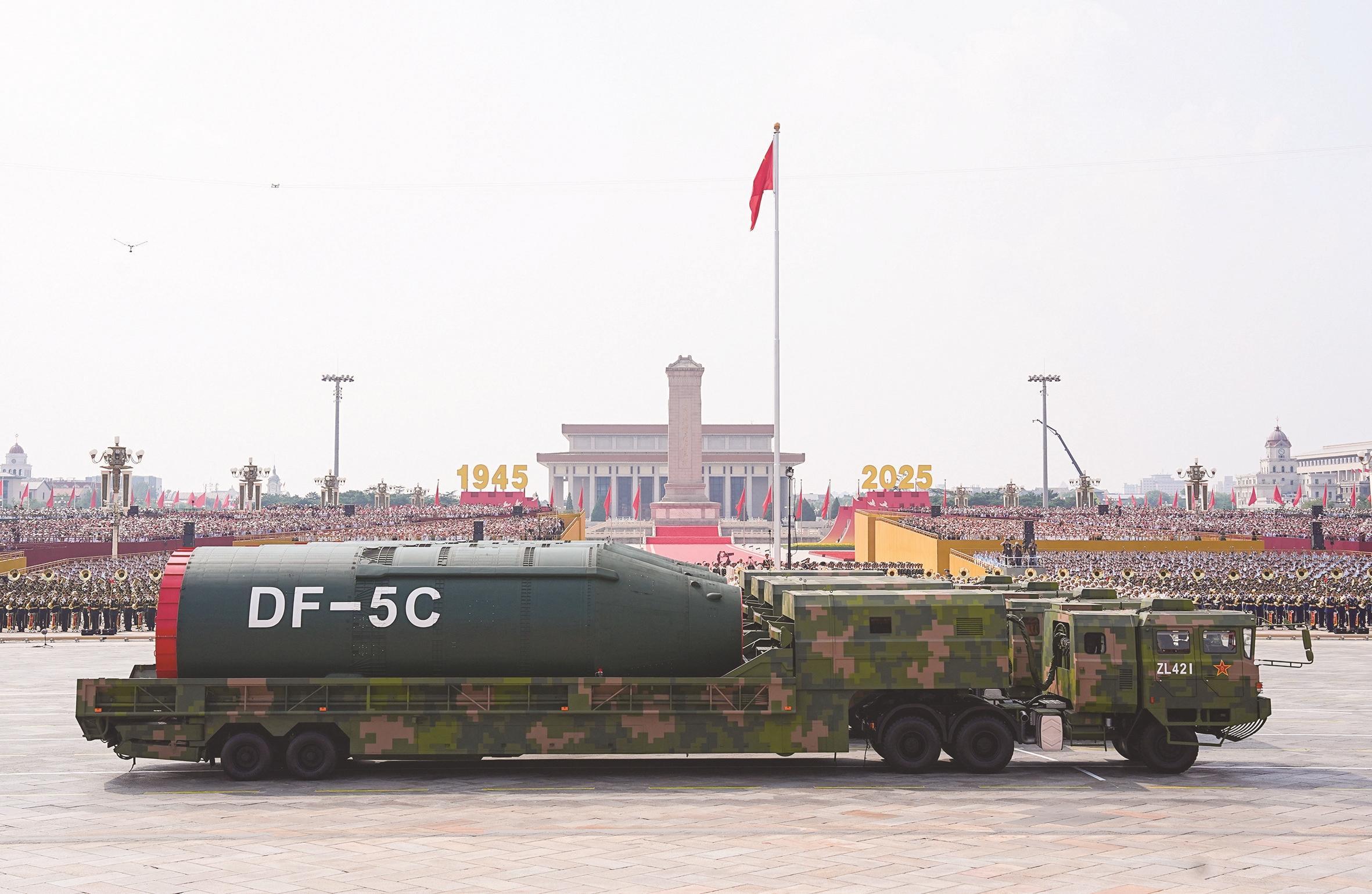 “东风-5C”液体洲际战略核导弹是我国战略反击体系中的重要组成,打击范围覆盖全球,全时戒备、有效威慑,以武止戈、砥定乾坤。(新华社)
