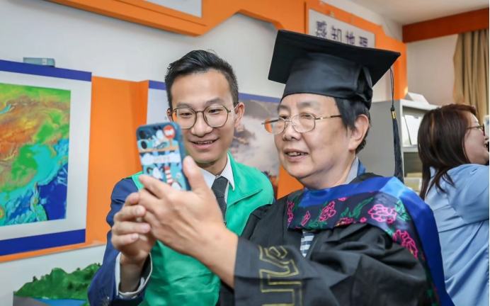 这次课上,贝壳公益“我来教您用手机”项目组成员吴淑萍和几位“铁粉”学员又见面了。75岁的桑奶奶骄傲地给老师展示自己剪辑的锻炼视频,有图有音乐还有字幕。68岁的学员曹刚已经“毕业”,顺利成为银发志愿者并反哺课堂。